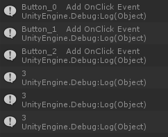 원하는 결과는 아래 3개의 Log에서 0, 1, 2 순서로 출력되어야 하는데 반복문에서 사용된 변수의 값의 최종값만 출력하게 되는 것 같아보였다. 이러한 상황에서 문제가 되는 상황은 List나 Array에 해당 값을 넣어서 접근하게 되면 out of range 가 일어나는 상황이다.